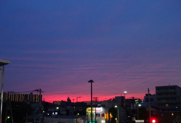 10月9日夕方、帰りの道すがら家の近く、日本の夕焼けが綺麗。静かで平和な日本を実感する。 |