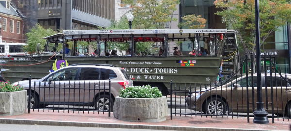 ボストンで人気のダックツアー。第二次世界大戦で実際に使われていた水陸両用車を使用して走っている。 |