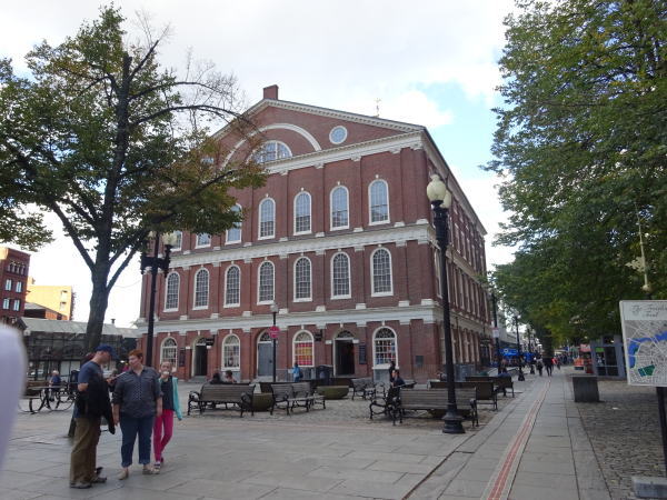 フリーダムトレイル(12) ファニエル・ホールは1740年に市場として建てられ、その2年後に集会場に転用された。サミュエル・アダムズやジェームス・オティスなど、独立派有力者が演説を行った場所としてボストン歴史的建造物に指定されている。 |