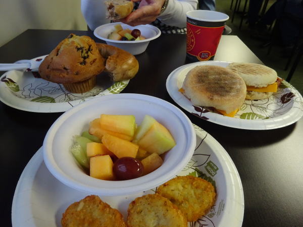 早朝6時起床 ホテル一階レストランで朝食。9:30チェックアウトする。 チャイナタウン横の大通りを歩いてモントリオールバスターミナルへ。 |