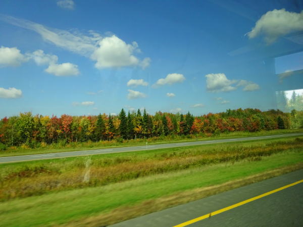 バスはメープル街道の名前通り道両側の紅葉並木を快適 に走ってケベックシティへ。14:15ケベック鉄道駅隣接のバスター ミナルへ到着する。 |