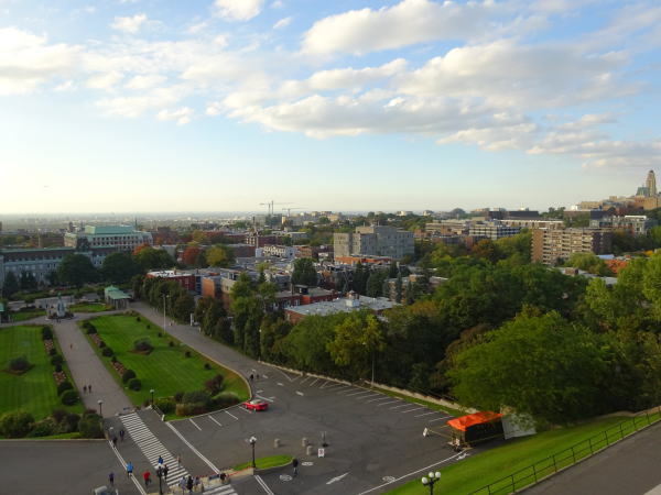 ケベックシティバスターミナルから街の高台にあるフェアモント ル シャトー フロントナックホテルまでは急な坂道をしばらく登り歩く。 |