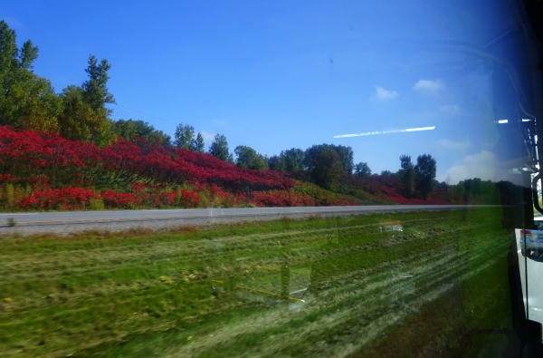 グレイハウンド.バスは道両側が紅葉並木のメープル街道ひた走り、モントリオールのバスターミナルに12:30到着して地下鉄でホテルに向かう。 |