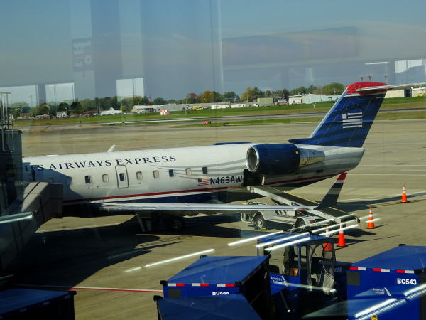 ナイアガラフォールズから乗ってきたバスはバッファロー空港を経由してニューヨークまで行くバスだったので更に乗客も増え満員になる。9:30分バッファロー空港に到着。ワシントンDC行きのUS-Airセルフチェックイン。預け荷物はトランク一個25jも徴収された。アメリカの航空会社はシビアだ。国内線だが搭乗までに厳重なセキュリティチェックがある。飛行機は2:2の4列席の小型機で持込手荷物は全員入口で預けさせられる。 |