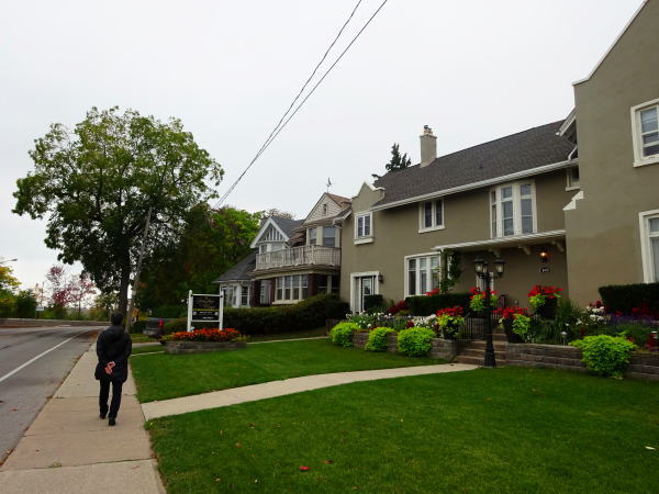 バスターミナルから帰り道はナイアガラ川沿いの道を歩く。ナイアガラの滝から流れてくる川水はあまりきれいとはいえなかった。ただこの川沿いには評価の高いB&Bが並んでいて、この辺に予約も考えていたがここではなく良かった。滝へ行くのにも遠いしそれほど風景のいい場所でもないからだ。ただどこも広い庭にはりすが走り回っていて心和む感じはした。 |