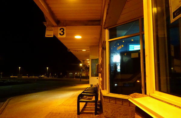 バスターミナルは夜明け前でほとんど待つ人もなく人影もまばら。一時間位待ちやっと来たバッファロー空港行きのバスに乗る。車内の照明が消されているがTorontoからの乗客が結構乗っている。 |