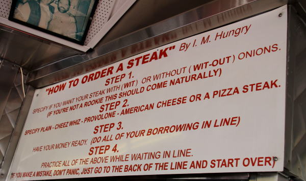 Pats-King-of-Steakの店内足元には1976年11月21日映画『ロッキー』でスターローンが立った場所に記念の石板がある。 |