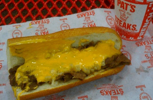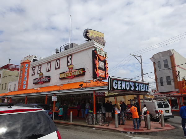 パッツステーキのライバルとして知られているのが、ジーノズ・ステーキ。9丁目 (9th Street) とパスユンク街 交差点で、通りを挟み向かいあっているが、どちらの店にもシルベスター・スタローンの写真が飾られている。 |