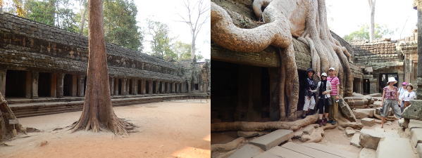 タプロームのランドマーク的大カジュマルの樹。力強い生命力は遺跡に絡みついているのか破壊しているのか区別がつかない。 |