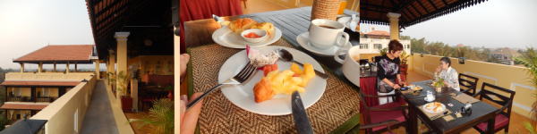 2日目ホテルの朝食は最上階にある開放的なレストランで。 今日は終日アンコール遺跡の『とらバス日本語ツアー』に参加する。8時指定集合場所アンコールホテルに向かう。 |
