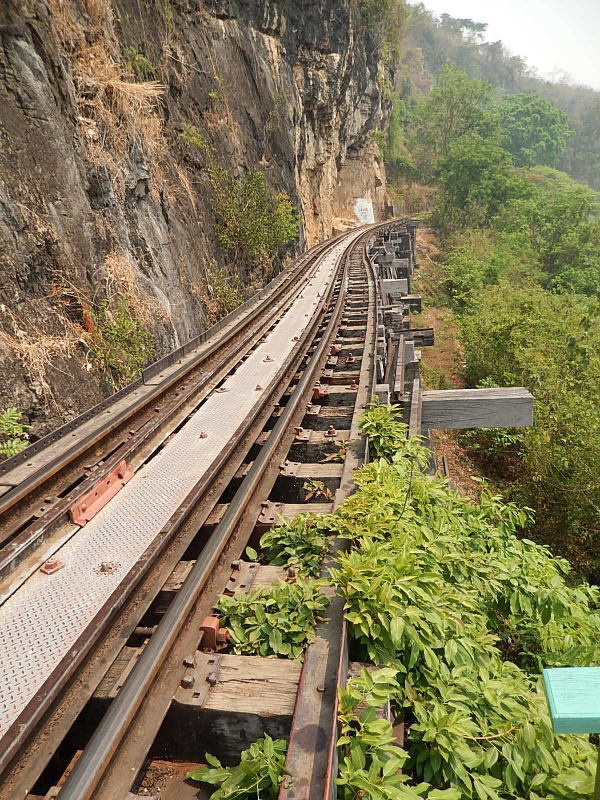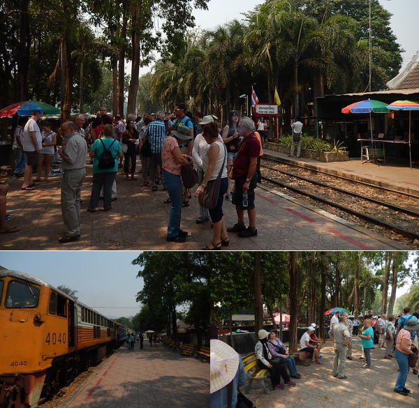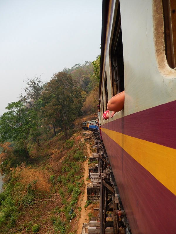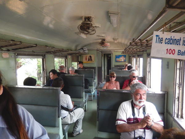 クゥワイ河橋駅から泰緬鉄道に乗車。この長距離列車は一日一本、10:45の発車 |