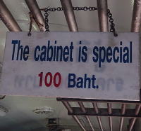 RIVER KWAI BRIDGE駅から終点の3つ手前のタムカセ(Tham Krasae)駅まで、約1時間あまり乗車する。 席は一応指定席「The cabinet is spesial 100Baht」 |