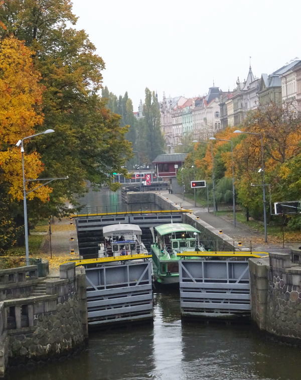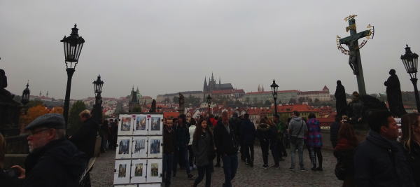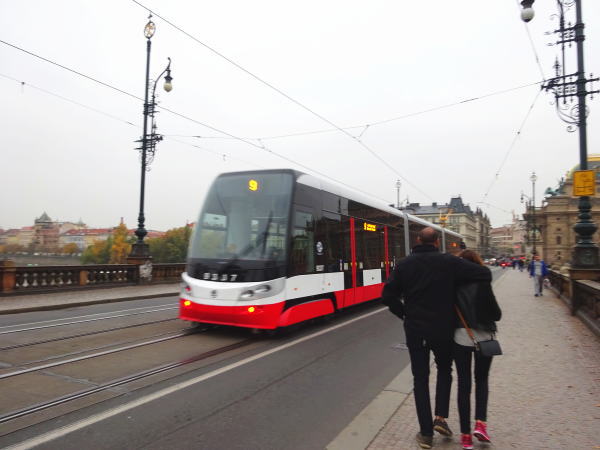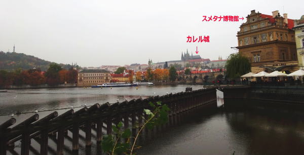 上層の城館からプラーシュチョヴィー橋上からは美しい街並みが一望できる。 |