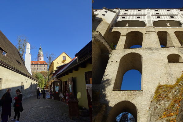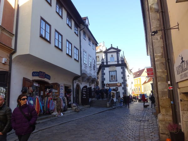 クルムロフ城を出て、チェスキークルムロフの旧市街とは別の路地を回り道しながら歩きバスターミナルに戻る。 |