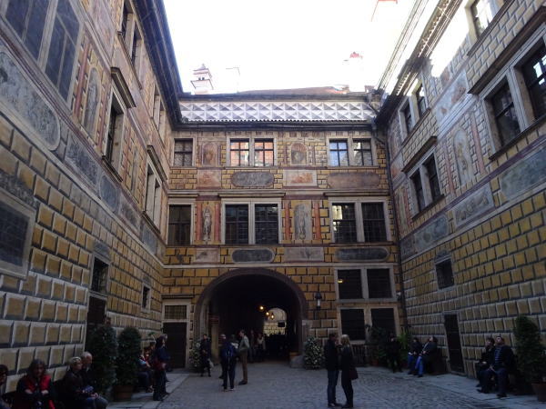 第二の中庭から長い通路をを進み第三の中庭へ。小さな第三と第四の中庭に面して建つのは上層の城館 Horni zámek でチェスキー・クルムロフ城の宮殿の部分。 |