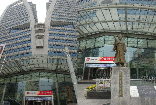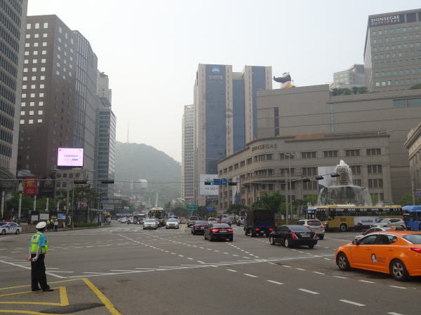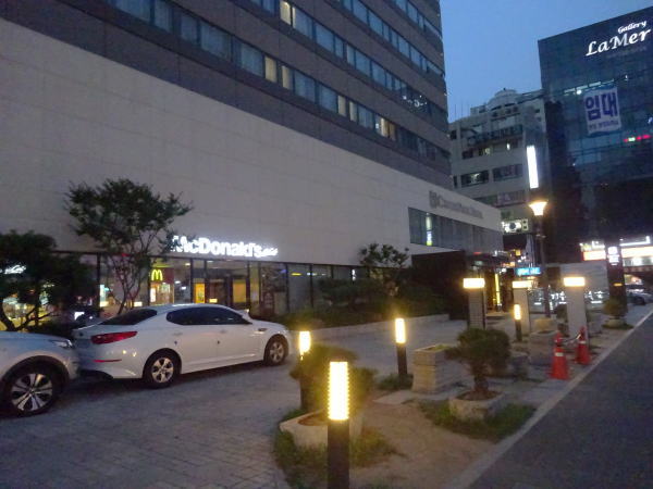 仁寺洞(インサドン)からCentermark Hotelは5分くらいで便利のいい宿だ。入口横にマクドナルドと韓国版コンビニGS25 |
