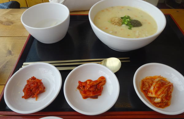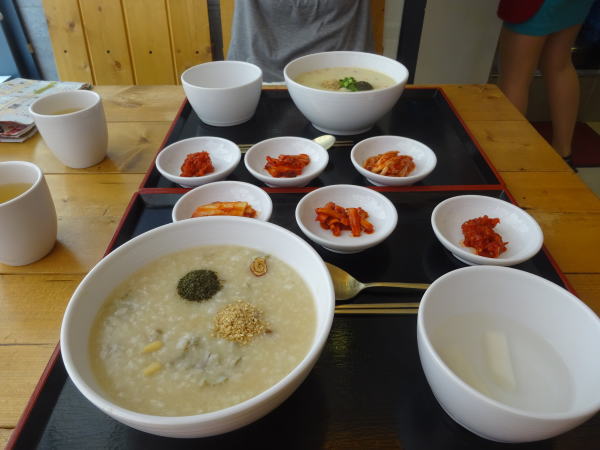 明洞聖堂すぐ脇 明洞ロイヤルホテル前ビルの2階のお粥の名店『Congee House』海鮮粥とあわび粥を注文。韓国旅行中で一番おいしい食事だった! |