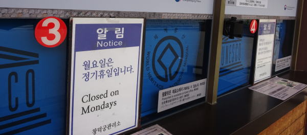 残念だが昌徳宮は月曜休館。次に歩いて北村韓屋村へ |