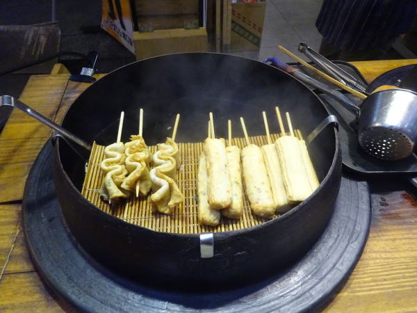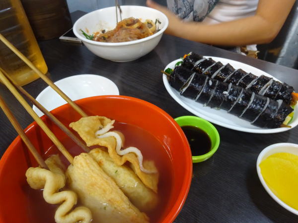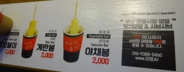 さつま揚風おでんは日本と同じ味、その他は海苔巻きと釜山風冷麺。この店はアルコールは一切出していない。
