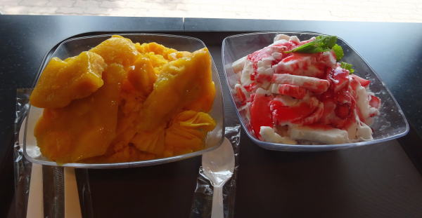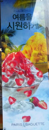皇南パン店から少し慶州バスターミナル寄りのパリヴァケットで休憩。マンゴー&イチゴかき氷各700㌆。