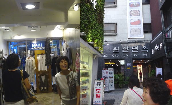 釜山旧市街のブティックに入り夏服を買う。14000㌆⇒11000㌆に値引き。そこの女主人がブティックの近くの冷麺では韓国の何かの大会で一番になったという店に案内しもらう。