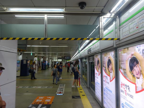 2016年7月1日帰国の日。午前中はゆっくりホテルで過ごし、11時過ぎチェックアウトして外に出ると、小雨で韓国に来て初めて傘をさし地下鉄中央駅へ。