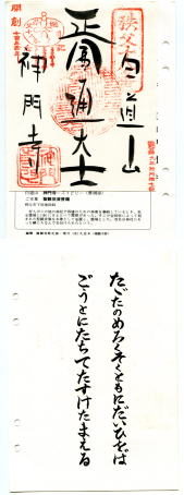 1984年(昭和59年)10月17日秩父三十四ヶ所2回目最後の参拝寺は 18番・神門寺は国道140号線が直前を走る場所に建つ。 国道を挟んで納経所があり、お参りした後、車の切れ目を見つけて国道を渡り納経してもらう。 |