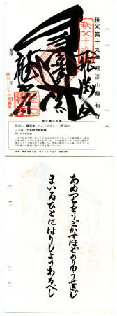 1984年(昭和59年)10月17日秩父三十四ヶ所2回目最後の参拝を終える今日で18ヶ寺をお参りして半分を過ぎ残り16ヶ寺。 |