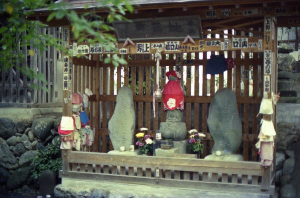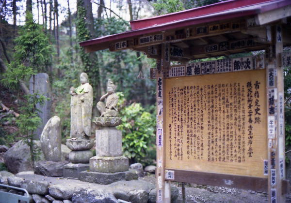 | ■ 札所二十二番 華台山 童子堂 (かだいさん どうじどう) 【物語】 讃州(香川県)に、ある農家の主人がいた。主人は金持ちであったが、飢えた行脚僧に食事を恵まなかった。しかし、その罰として、主人の息子は犬に変えられてしまった。罪を悔いた主人は、四国、西国、坂東の各霊場をまわり、童子堂まで来て詣でたところ、息子が犬から人間に戻れたそうである。 【記事】 参道入り口の童顔の地蔵尊や、仁王門の左右の格子の中に安置されている仁王像は、童子堂の名にぴったりのユーモラスな表情をしている。 この寺は正式には「栄福寺」という名だが、子供にまつわる伝説が次々に生じ、今の「童子堂」という呼び名が著名になった。 【ひと言】 二十二番では毎年、五月五日に花祭りがあり、子供たちが集まりたいへん賑わう。 童子堂の山門と、夕焼け小焼け、そしてわらべの遊ぶ姿が絵になる。 【御詠歌】極楽をここで見つけて童う堂 後の世までもたのもしきかな 【所在地】〒368‐0056 埼玉県秩父市大字寺尾3595 【電話番号】0494‐23‐9989 出典:CANON ELECTONICS INC編纂より |