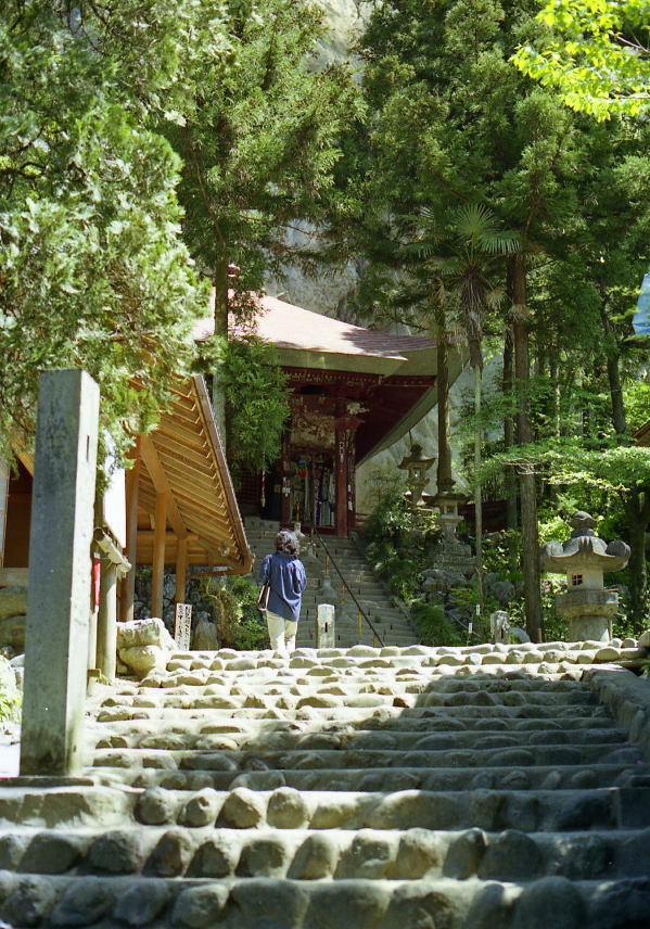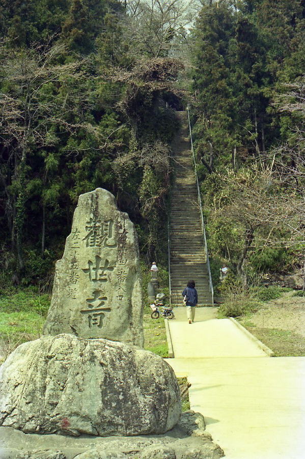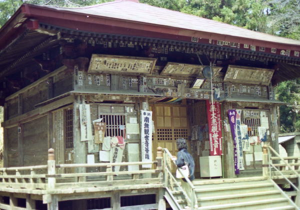 昭和60年4月10日秩父三十四ヶ所 4回目巡拝 19番・竜石寺〜20番・岩上堂〜21番・観音寺〜22番・栄福寺〜23番・音楽寺〜24番・法泉寺〜25番・久昌寺と前回同様7ヶ寺を周る。 22番・栄福寺からは山道に入り軽いハイキングコースを20分程登り小さなみやげ物店などある参堂を登ると23番・音楽寺境内。 |