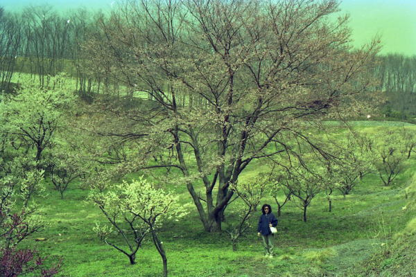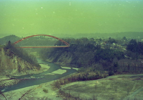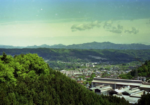 1985年(昭和60年)5月8日 26番・岩井堂(円融寺)から27番・大淵寺へは秩父盆地の雄大な展望を見ながら尾根路のハイキングコース(右下は昭和電工工場) |