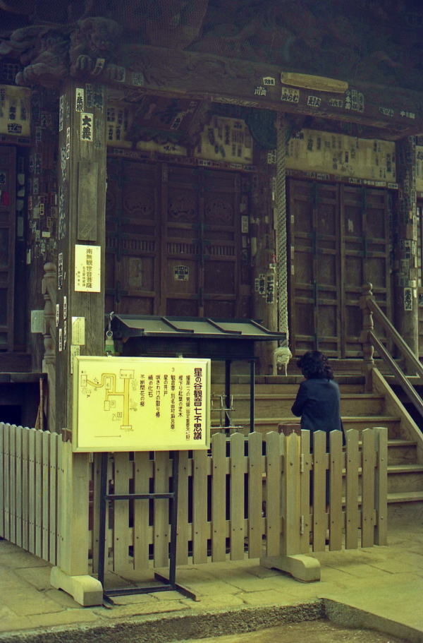 さて、田村麻呂の祈願以前について寺史は、養老二年 (七一八) 沙門逸海が四十八峰、九十九谷といわれた岩殿山の山腹の崖を削り、千手観音像を岩窟に納めたのが草創であるといい、また、役ノ行者によって開かれた修験の霊場であるとも伝えられている。「大東文化大学」 でバスを下り、裏参道を行くことになるが、少し時間をかけてもこの寺は表参道から詣でたい。