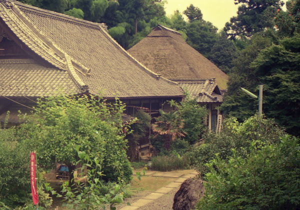 山門への参道は両側に民家がならぶ静かな道。