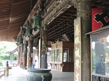 紀三井寺にはAM11:30到着する。山門前には土産物を売る商店が軒を連なっている。門前の商店街の正面にそびえたつ山門をくぐり急な石段を一直線に登っていく。石段の途中右側に清水があり『清浄水』と呼ばれ他に山内には『吉祥水』『楊柳水』の三つの泉(井)に紀州の紀をつけ紀三井寺と呼ばれている。231段の石段を登りきると境内には鐘楼、六角堂、大師堂が並んでいる。ご本尊は疫病厄難から救済して下さる十一面観音様。