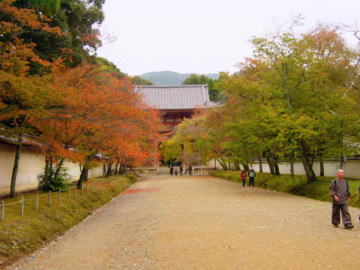 豊臣秀吉が絶頂期に醍醐の花見をして有名になったお寺だけあって規模が桁違いに大きい。駐車場も沢山あったが女人堂に近いと思われる一番奥の駐車場におく。木々が赤く染まりかけた醍醐寺参道を歩きちょうど醍醐寺の後奥の女人堂へ行く。ハイキングスタイルの人も多くこの辺は京都の行楽地になっているらしい。