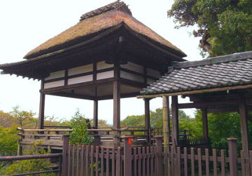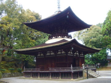 本堂右手を上がっていくと均整とれた美しい屋根の多宝塔があり、本堂とともに国宝に指定されている。 多宝塔東側は展望の開けた展望台になっていて風雅な東屋月見亭。 |