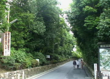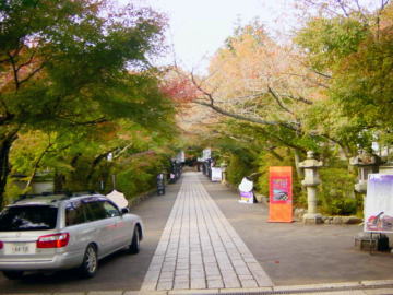 泉涌寺から木立の中を歩き朱塗りの鳥居橋を渡りしばらく行くと並木の先に今熊野観音寺の山門が見えてくる。