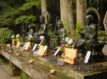 山門をくぐると山の香りが満ちている。本堂前の石段下には幼な子二人が立派な僧にまつわる銅像が建っている。子護大師という弘法大師のお姿だそうだ。