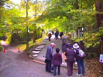 | 駐車料金を節約して岩間寺手前の山道脇に駐車して少し歩く。日曜日なので駐車場には大型バスが数台停まっていて境内は沢山の参詣客で賑やかだった。 |