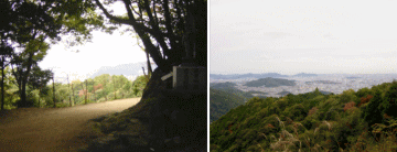 円教寺石段下で百観音巡り最後の記念撮影をする。 24年の歳月を振り返り、思い出話を語りながらロープウェイ駅まで下る。下りの山道は深い森が途切れた所々から姫路市内が遠くにひろがってきれいだ。 |
