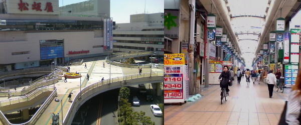 東海道線・高槻駅前から高槻センター街を抜け阪急高槻駅へ |
