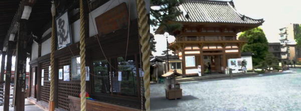 それほど広くない境内は形のいい松やそてつが本堂を飾っている。本堂は戦国時代織田信長の兵により焼かれたが ご本尊は下半身だけ焼かれ残って 本堂は豊臣秀頼により再建されたものだ。