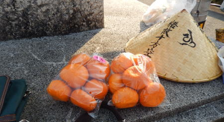バスを降りて身支度すると早、お接待にみかんをいただく。