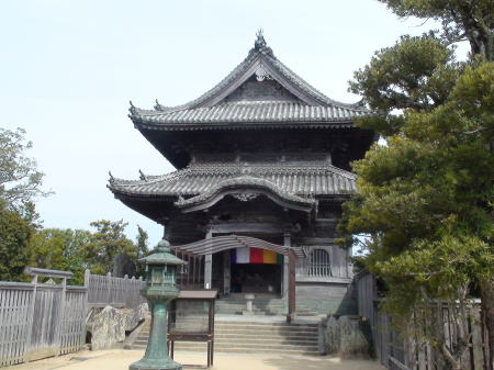 JR府中から12:09〜12:21JR徳島まで静岡さんと三人で電車に乗る。徳島駅前から小松島市営バス徳島12:45発に乗る予定。お昼は静岡さんは駅近くの「セルフうどんやま」へうちはセブンイレブンでパンを買い、バス乗り場で食べる。12:45バス時間ぎりぎりに静岡さんが息を切らせて走って帰ってくる。約40分でバスは恩山寺入口に到着。歩いて約20分程山の中腹のお寺に着く。この寺は弘法大師のご母堂・玉依御前が剃髪されたと伝えられるお堂が本堂右に残っている。お参りした後、境内で休憩していると、地元の参拝客のご夫婦が話しかけられるしゃべっている中で、義経が屋島に行く途中この近くを通ったことなど話してくれた。ここから十九番へのへんろ道は弦巻坂など通るのが道が崩れて不通になっていてだいぶ迂回した車道を歩かねばならなく残念だった。