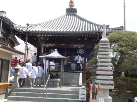 三人でお参りする。静岡さんが予定表を見せてくれる。地図の各札所地点を線で結んで所々に「テ」という文字が沢山見られ、それはテント泊の場所だそうで野宿する場所だそうだ。4月といえ夜は寒いだろうに心配すると、もう何度も山登りして経験があるそうだった。彼は奥さんがまだ仕事していて一人遍路を通し打ちといって1番から88番まで一度に周る歩き遍路だ。あの二人の外人さんも、名古屋から来て財布を拾ってあげた人も皆通し打ちの人たちで、皆約2ヶ月余り毎日歩きとおしで大変だなと思う。が、それだけ時間の取れるのも幸せな事とも思う。