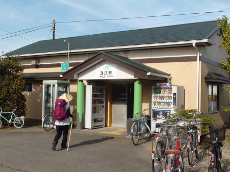立江寺からJR立江駅は直ぐ近く、無人駅だ。ホームで十一番の吉野旅館に同宿しへんろころがしも同じ時間出発した方と再会する。あまりの歩く速さに「スーパーマン」と呼んでいた人だ。一緒に14:13の電車に乗り徳島に着くまでいろいろ話が聞けた。本職のお坊さんで、大阪から何度も歩きへんろをしているそうでここまでの各お寺の住職のことやへんろ宿のことなどとても詳しくガイドブック以上の情報を沢山持っていた。 徳島に着きホテルは駅間近のビジネスホテル。 四国遍路第一回目はここで終わる。