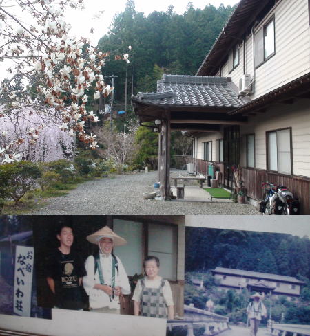 そろそろ焼山寺から4`先の今夜の宿のある鍋岩へ下ろうと支度をして、オーストリア青年とオランダ少年に別れを告げようと声をかけると、今夜の宿を聞かれる。鍋岩荘と答えるとオーストリア青年も偶然同じ宿で、オランダ少年が鍋岩荘に泊まれるかどうか、自分には細かい日本語が話せないので聞いて欲しい頼まれる。快く引き受けて鍋岩荘に電話する。しかし不在らしく誰も電話に出ない。彼らのことを考え出発を遅らせでしばらく時間を空けてかけ直すことにする。納経所横の休憩所で、しばらくしてからもう一度電話する。何度か呼び出し音の後やっと電話に宿の主人が出た。どうか空いていてくれと心の中で祈りながら事情を話すと、部屋は空いていると返事。よかった、外人二人に予約取れたと伝えるととても喜んでくれた。静岡さんも一緒に下山することになり道連れが増え五人で焼山寺を後にして山を下る。オランダ少年は心強い道連れが出来て安堵の様子が身体全体からほとばしっていた。日本に来て一番楽しい瞬間だろうなと思った。静岡さんもやっと無罪放免で気持ちが楽になったと喜んでいる。片言英語と日本語が飛び交いながらの山下りは皆とても楽しそうだ。へんろころがしの厳しい12`余り歩いた後、鍋岩まで4`の道もあっという間で午後2時半、宿に到着する。善根宿や格安民宿を寝泊りしてきた静岡さんも空いていたら自分も鍋岩荘に泊まりたいといい出して、宿の玄関に入り直ぐに訊ねると、一部屋空いていると言われ、今夜は5人全員こちらで厄介になることとなる。
