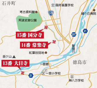 一三番大日寺から十七番まで五ヶ寺は隣り合っていて五ヶ所参りという日帰り遍路を楽しむ人も多いとか。