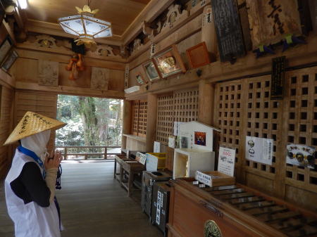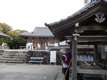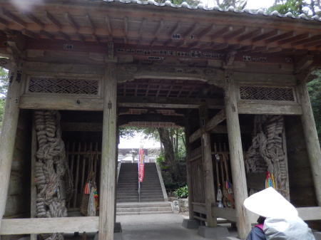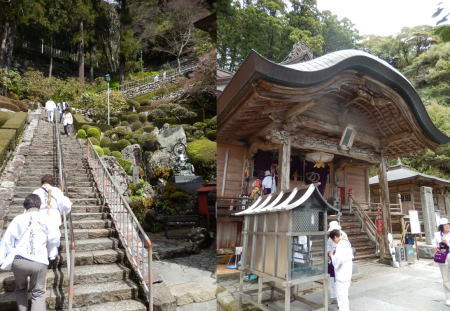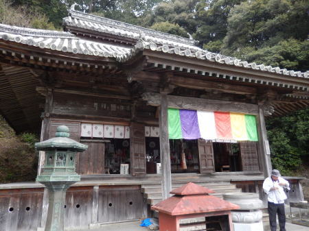 昨晩20時東京から深夜便で6:40徳島に着き。山名バス停から急峻な山道を登り20番鶴林寺に参拝、次の太龍寺を目指す。那賀川から山道は又急峻な遍路道が続き。午後1時過ぎにやっと大龍寺に到着。この辺からMは右足膝に痛みが発生。昨夜のバス車中での一晩中不自然な姿勢でいたのと一日目から急な山道を歩き続けたせいだろうか。大龍寺参拝後不安をかかえながら次の22番平等寺に向かう。 |