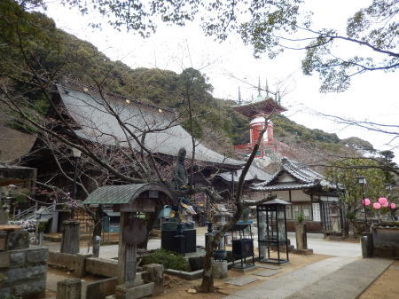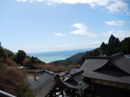 ホテルなはりの朝は豪雨で予報では昼頃に天候も回復するというので、11:00頃奈半利駅から唐浜まで電車で行く。唐浜では雨も上がり駅前から約一時間山道を登り神峰寺へ。山道は各所満開の桜が美しい。下山して唐浜へ。電車で安芸へ向かう。
